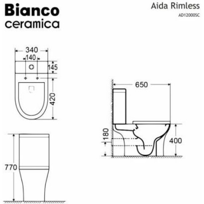 BIANCO CERAMICA DELIA RIMLESS ΛΕΚΑΝΗ Χ.Π 65εκ DL12000SC-300