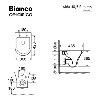 BIANCO CERAMICA REMO RIMLESS ΚΡΕΜΑΣΤΗ ΛΕΚΑΝΗ BLACK MATT RM11500SC-401